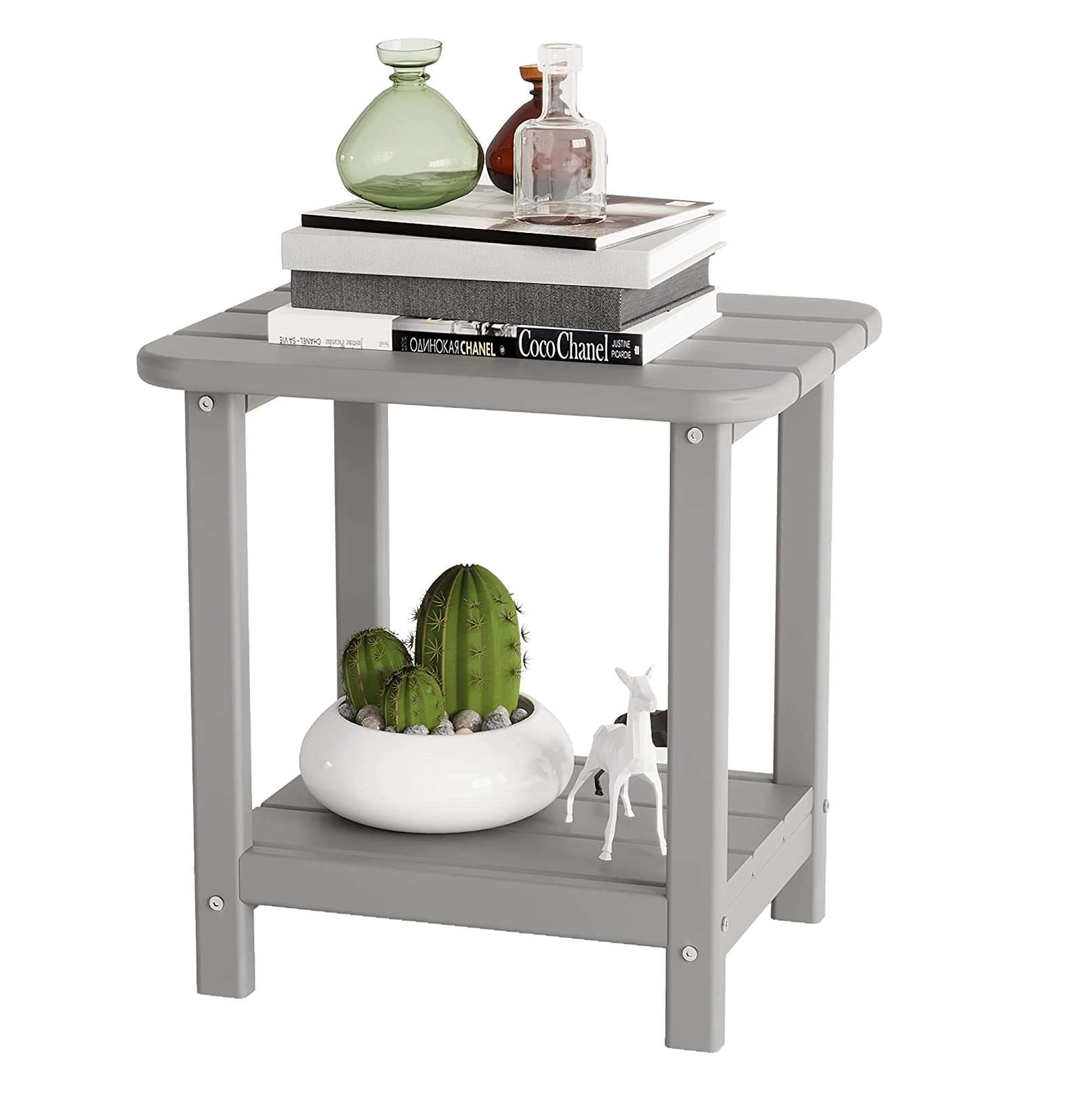 18"x15" Side Table Patio Adirondack Small End Table All Weather HDPE Water Resistant 2 Tier Rectangular Outside Table for Pool, Garden, Beach Gray
