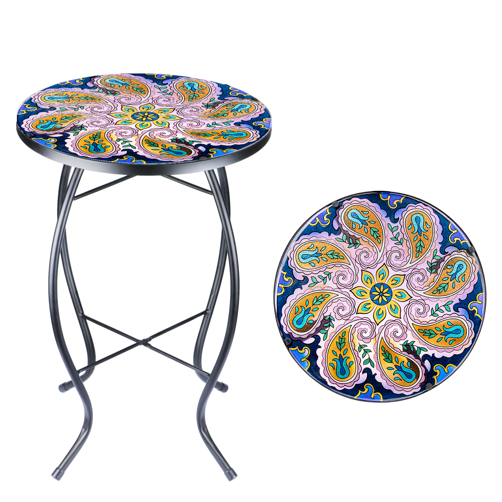 Wonder Garden Outdoor Side Table Purple Phoenix Tail Mosaic End Table Patio Side Table Small End Table Glass Top Round Balcony Coffee Table Porch Indoor Glass Top