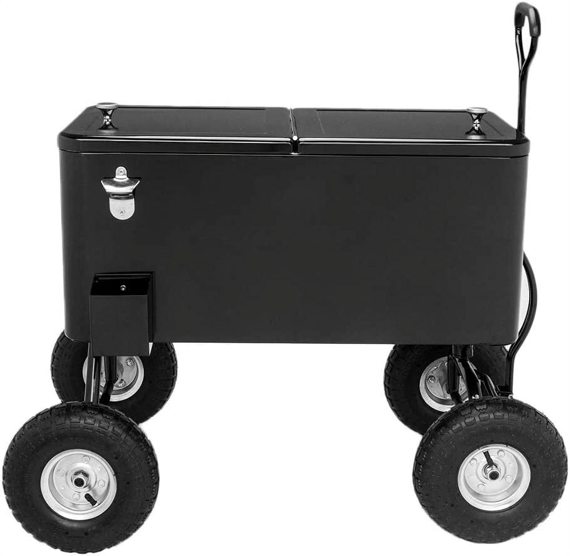 VINGLI 80qt. Wagon Rolling Cooler Ice Chest w/Long Handle and 10" Wheels, Patio Cooler, Outdoor Park Cart on Wheels