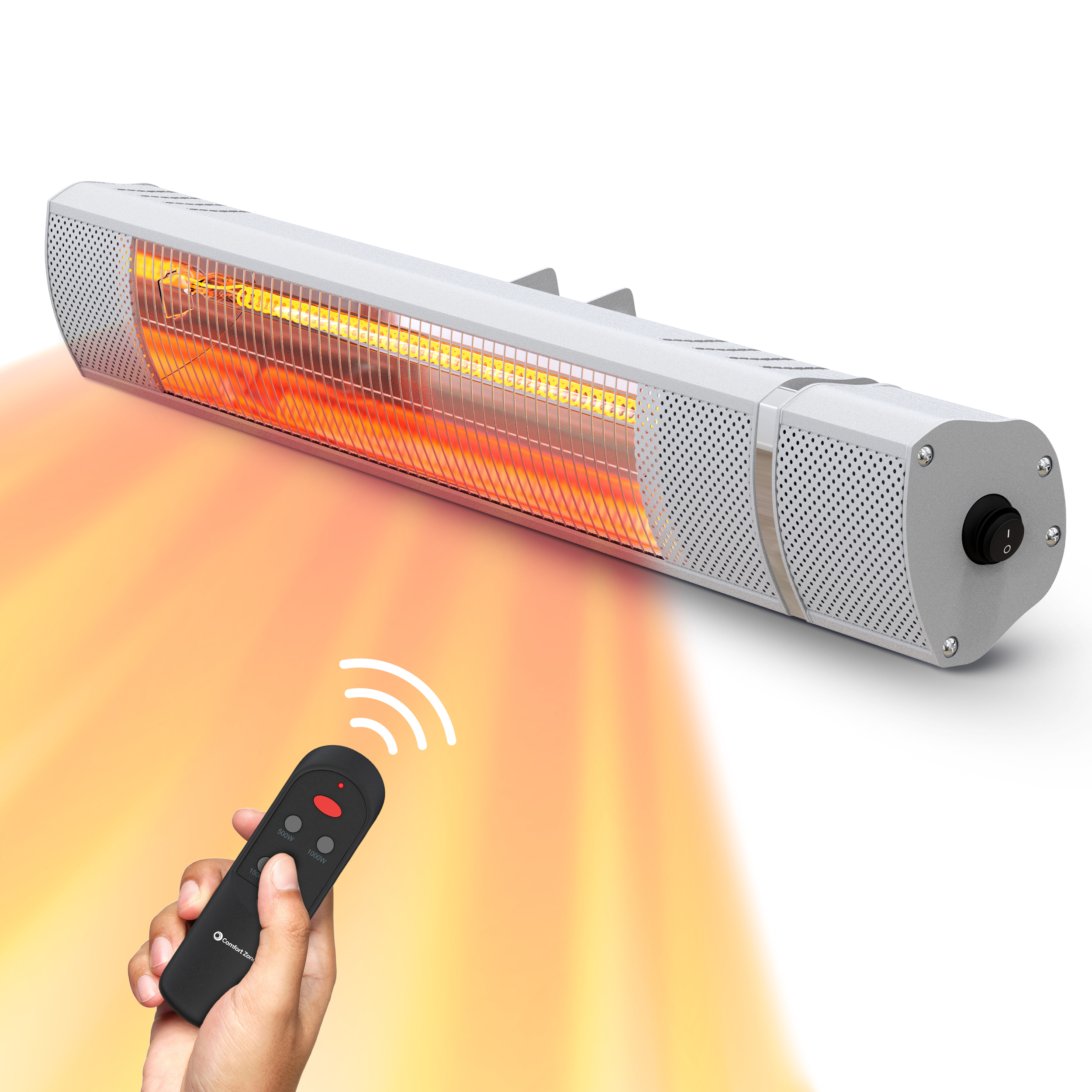 Comfort Zone 1,500-Watt Indoor/Outdoor Patio Heater with Remote, IP65 Waterproof rated for Outdoor Use in Wet Conditions, Wall-Mountable, Overheat Protection, and Safety Tip-over Switch