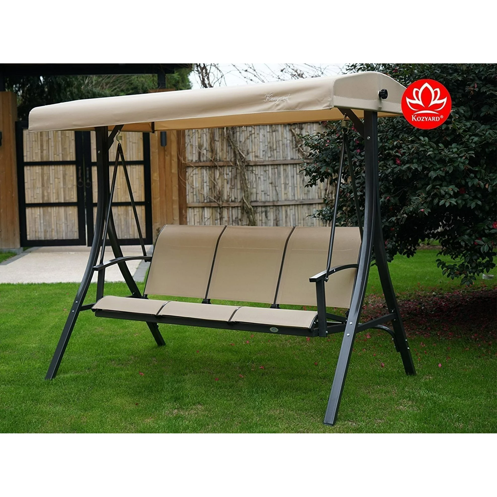 Kozyard Brenda Patio Swing with Coated Steel Frame (Beige, 3 Seat)