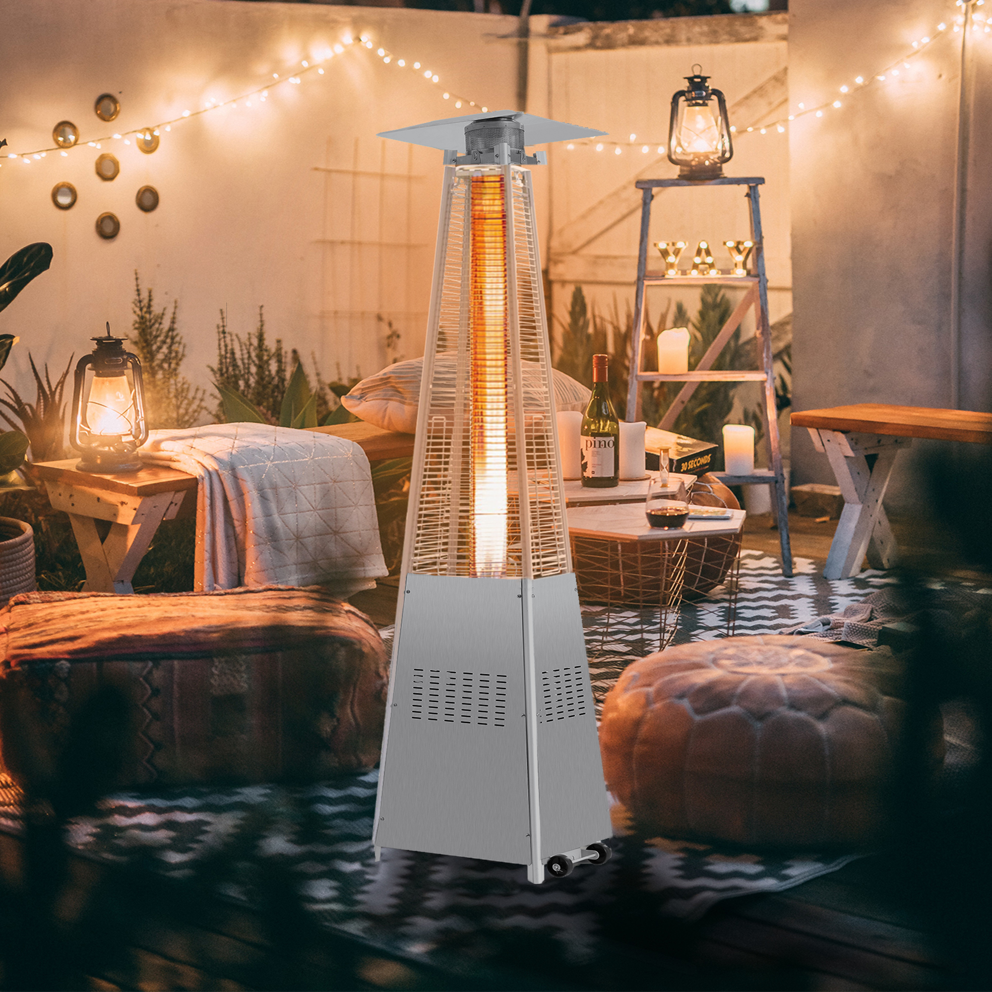 Gplesas Bronze Outdoor Heating Gas Stainless Steel Patio Heaters Propane Portable Wheels Garden Home Silver