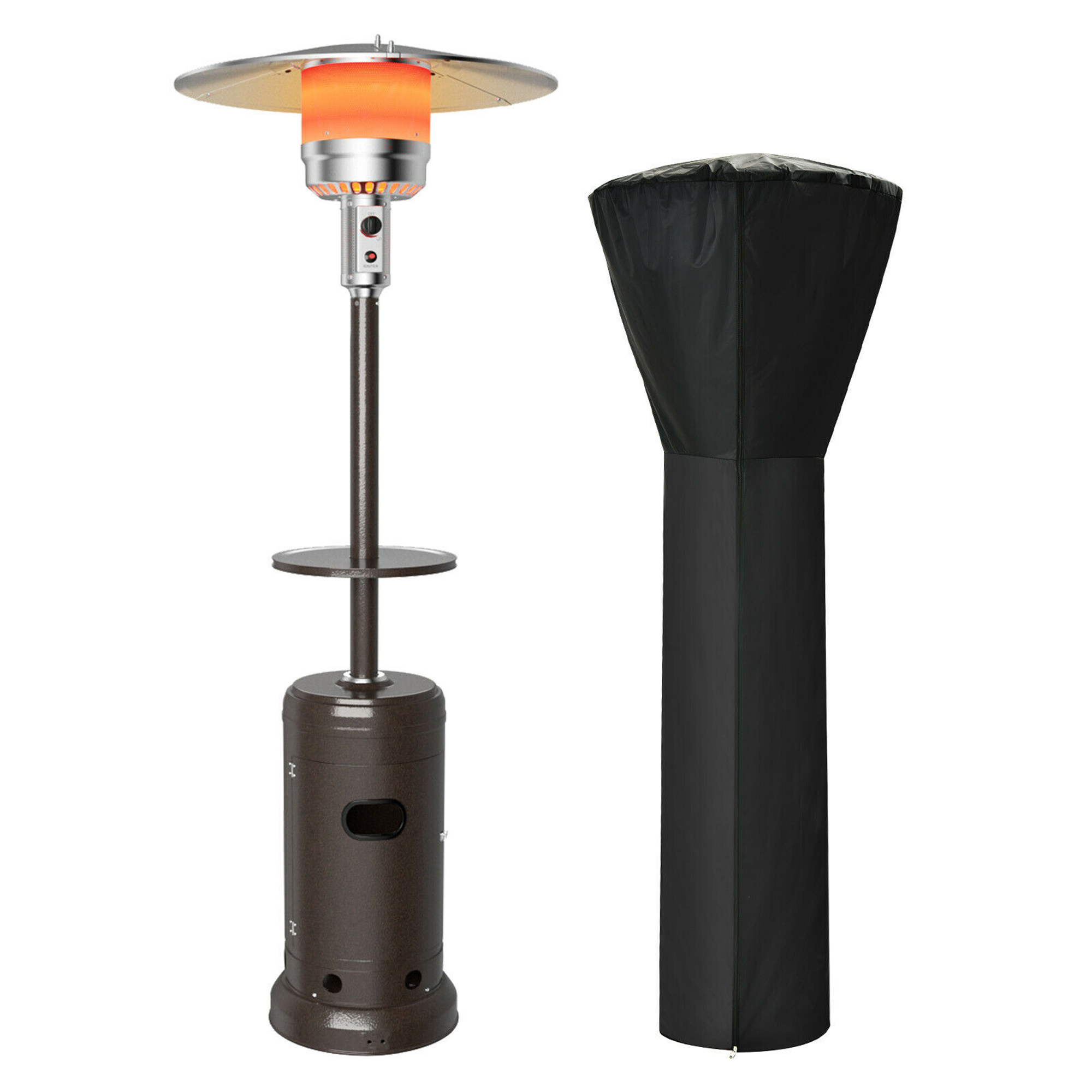 Gymax 87'' Tall Patio Propane Heater 48,000 BTU W/ Cover & Table Bronze