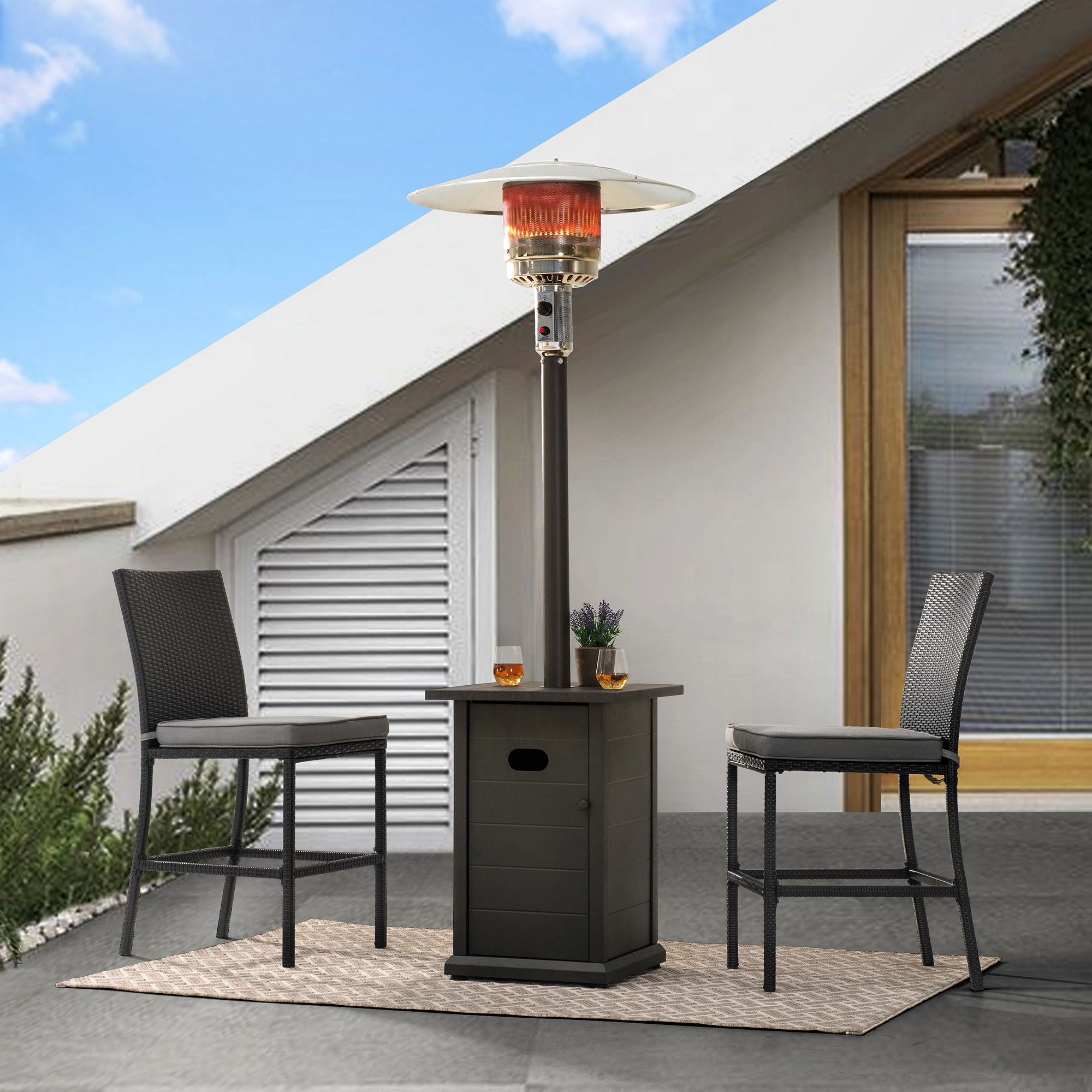 Sunjoy Lennick 40,000 BTU Gray Steel Frame Outdoor Patio Propane Gas Heater with Table Top for Commercial & Residential Use