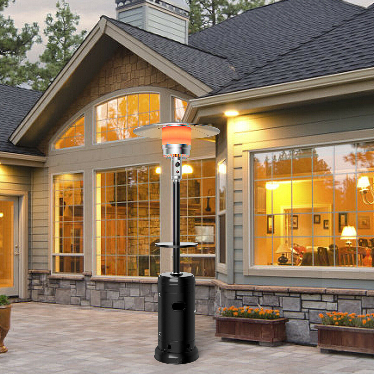 Gymax Patio Heater Outdoor Steel LP Gas Propane Standing Heater w/ Table & Wheels Black