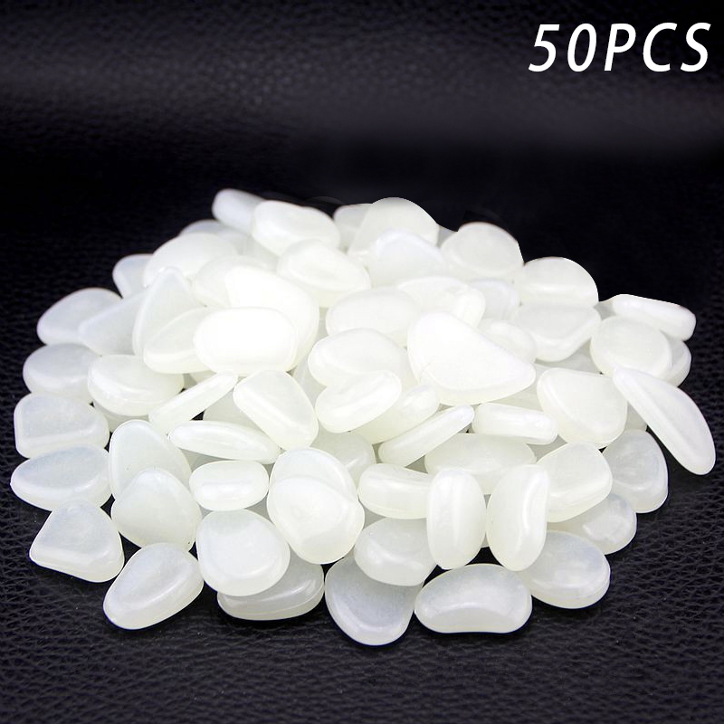 VeliToy 50 Pcs Fluorescence Pebble Stones Luminous Garden Walkway Flower Bed Shiny Patio(White)
