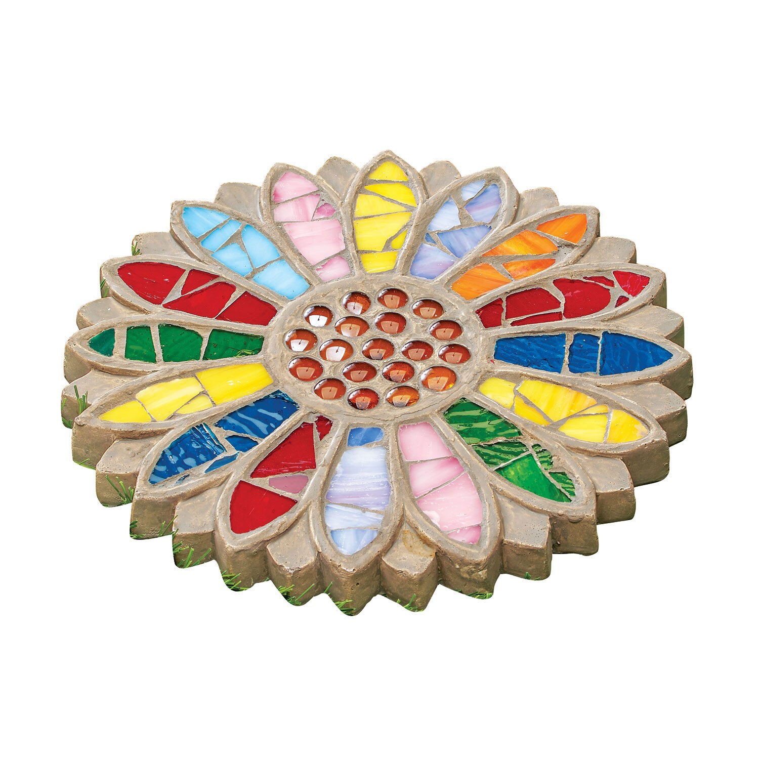 ART & ARTIFACT Daisy Stepping Stone - Floral Mosaic Patio Pavers, Garden Path Stones, Flower Shaped Stepping Stones Outdoor Decorative Stones, House Flagstone