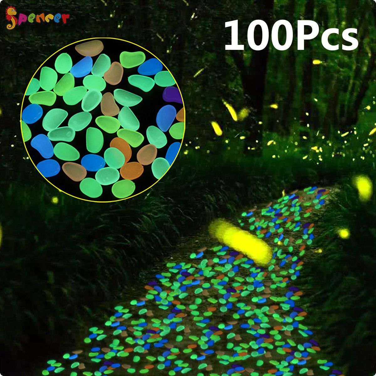 ANNVCHI 100Pcs Luminous Stones Glow in the Dark Garden Pebbles Rocks for Home Outdoor Walkways Garden Path Patio Lawn Garden Yard Fish Tank Decor Mix Color