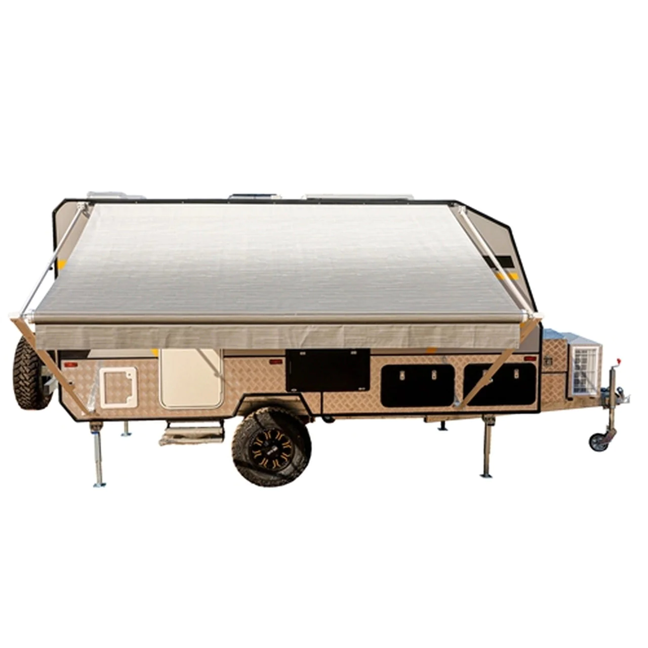 Aleko Retractable White Frame Patio Awning - 10 x 8 Feet - Gray and White Striped