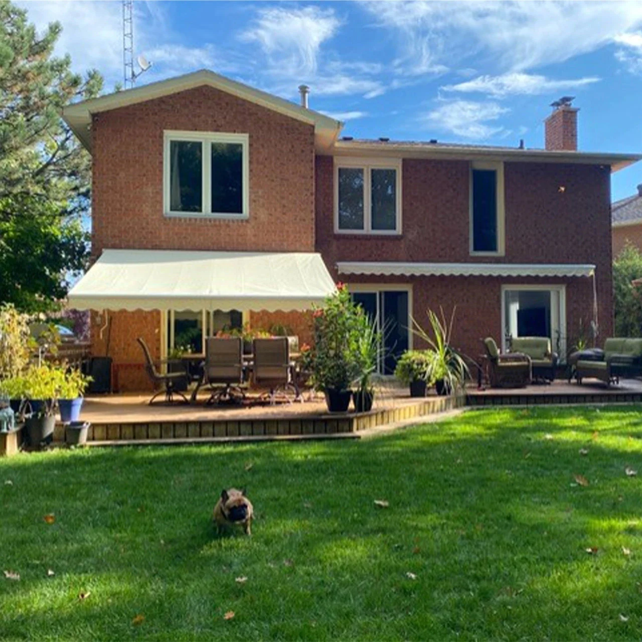 Aleko Motorized Retractable White Frame Patio Awning 12 x 10 Feet - Gray and White Striped