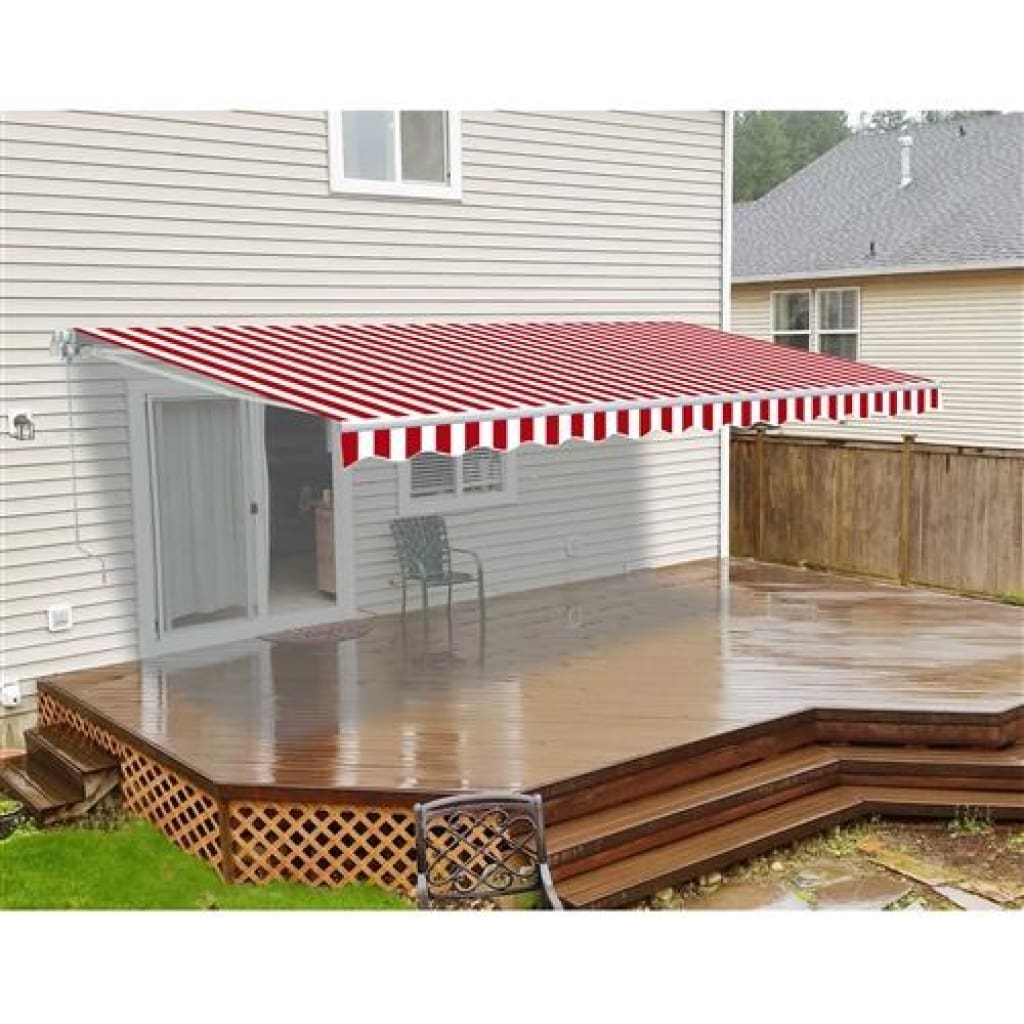 Aleko Retractable Patio Awning 12x10 Feet Red and White Striped AW12X10RWSTR05-AP