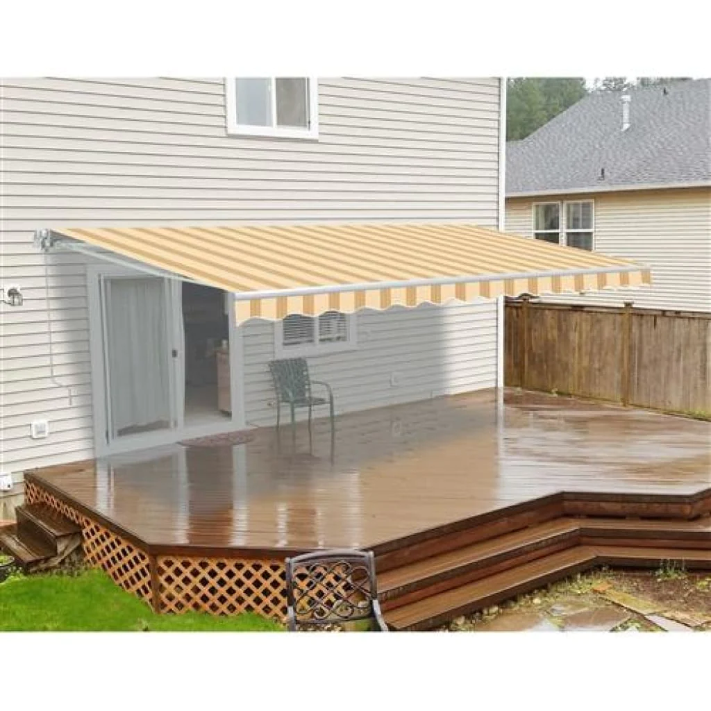 Aleko Retractable Patio Awning 12x10 Feet Multi Striped Yellow AW12X10MSTRY315-AP