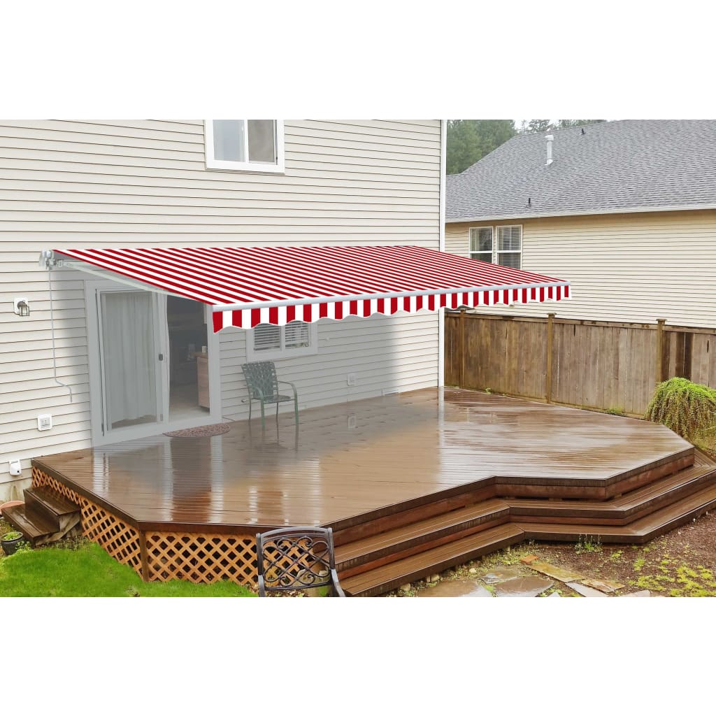 Aleko Motorized Retractable Patio Awning 20x10 Feet Red and White Striped AWM20X10REDWHSTR-AP