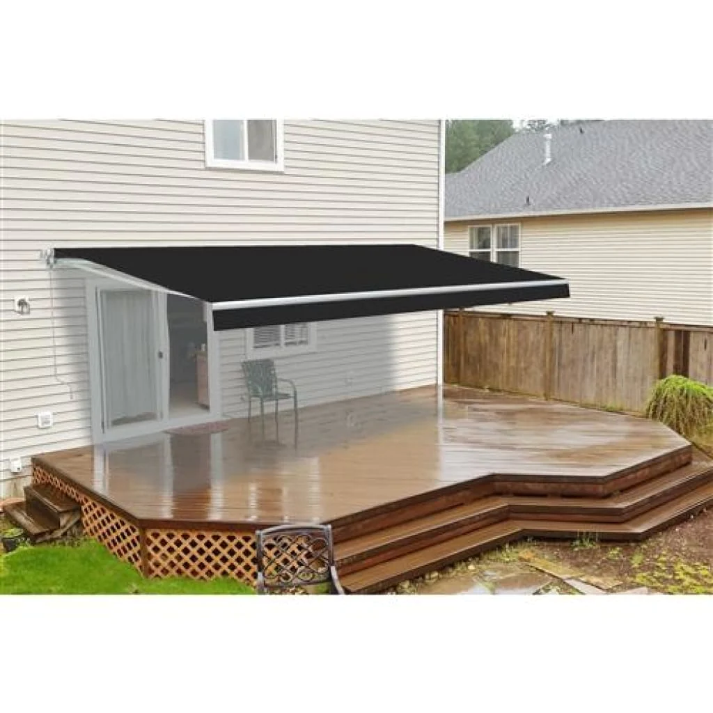 Aleko Motorized Retractable Black Frame Patio Awning 13 x 10 Feet Brown ABM13X10BRO36-AP