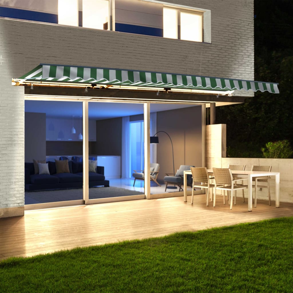 Aleko Half Cassette Motorized Retractable LED Luxury Patio Awning - 20 x 10 Feet - Green and White Stripes AWCL20X10GRWT00-AP