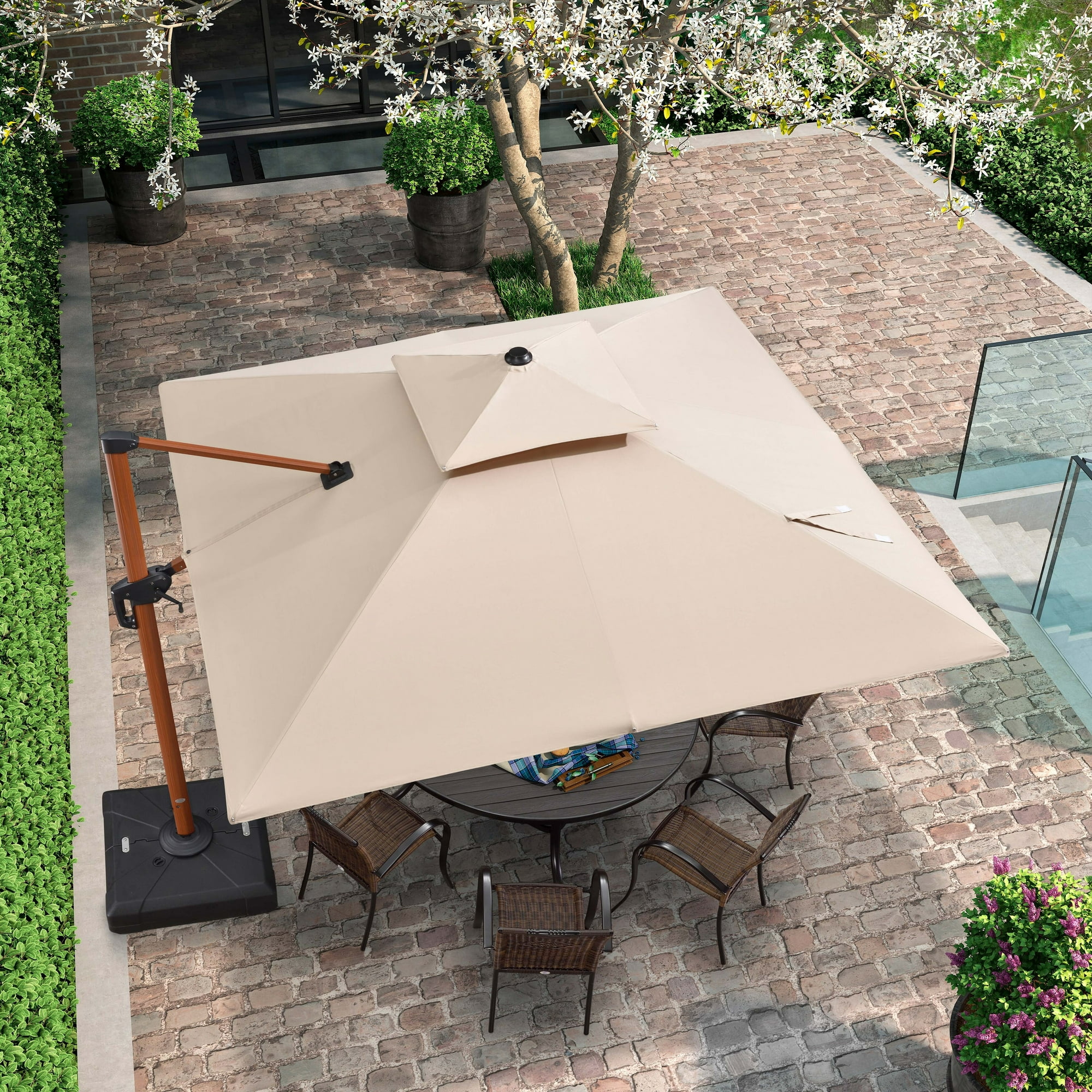 PURPLE LEAF 10ft Square Wood Pattern Patio Cantilever Umbrella Beige