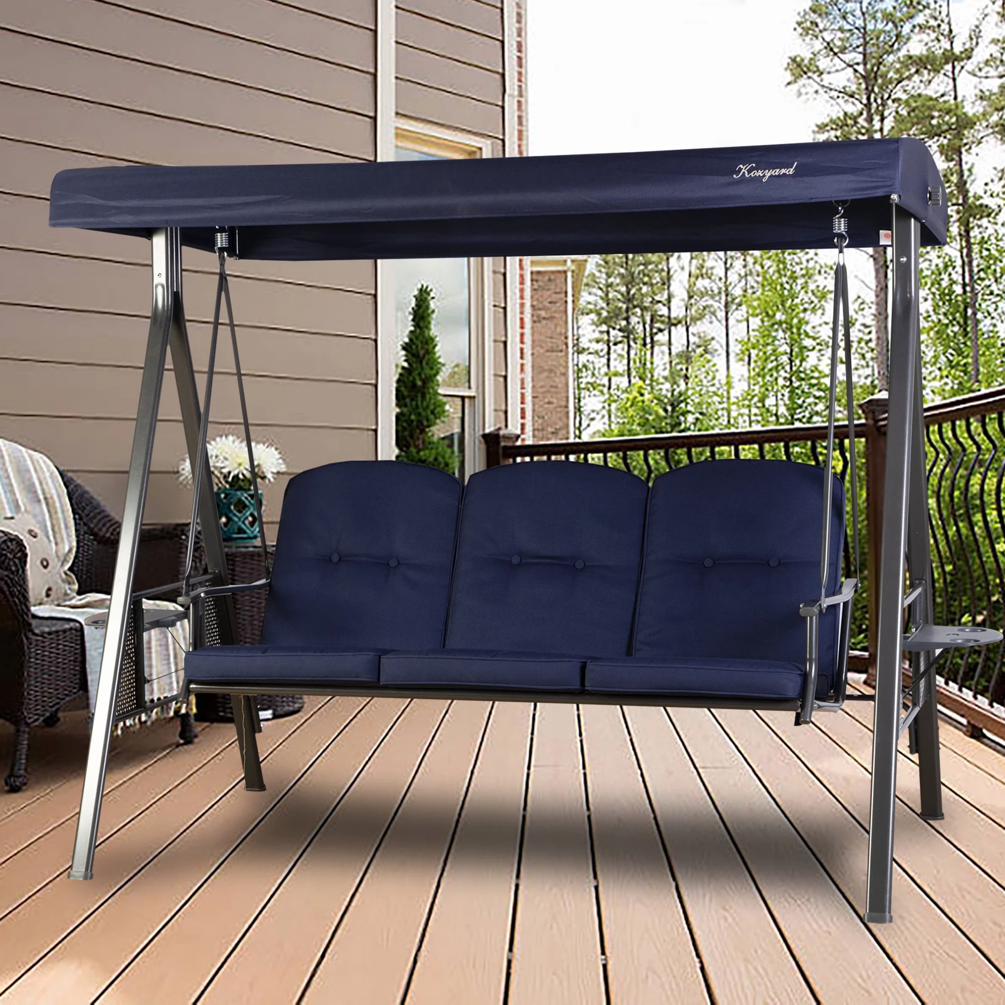 Kozyard Herbert 3 Seat Outdoor Deluxe Patio Swing with Comfortable Cushion (Navy Blue)