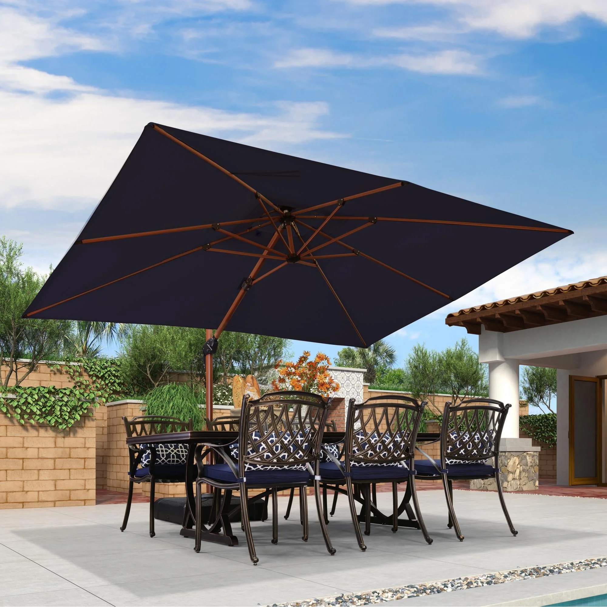 PURPLE LEAF 9' X 12' Double Top Deluxe Wood Pattern Rectangle Patio Umbrella Offset Hanging Umbrella Outdoor Market Umbrella Garden Umbrella, Navy Blue