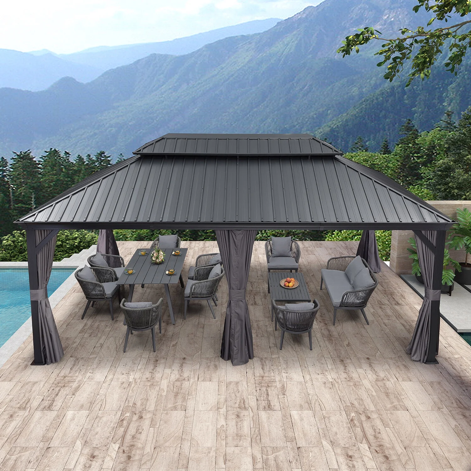 PURPLE LEAF 12' X 20' Permanent Hardtop Gazebo Aluminum Frame Gazebo with Galvanized Steel Double Roof for Patio Lawn and Garden, Curtains and Netting Included, Grey