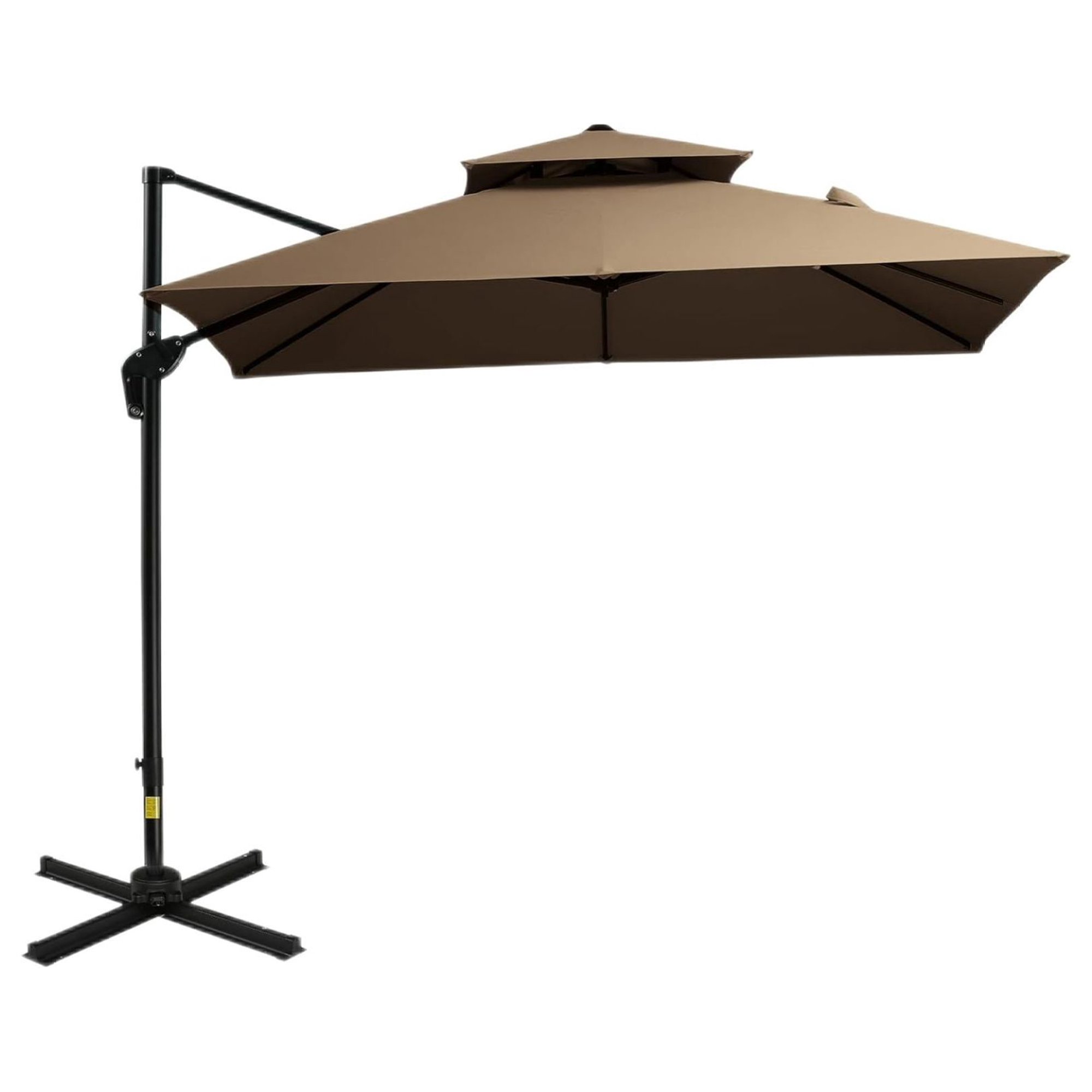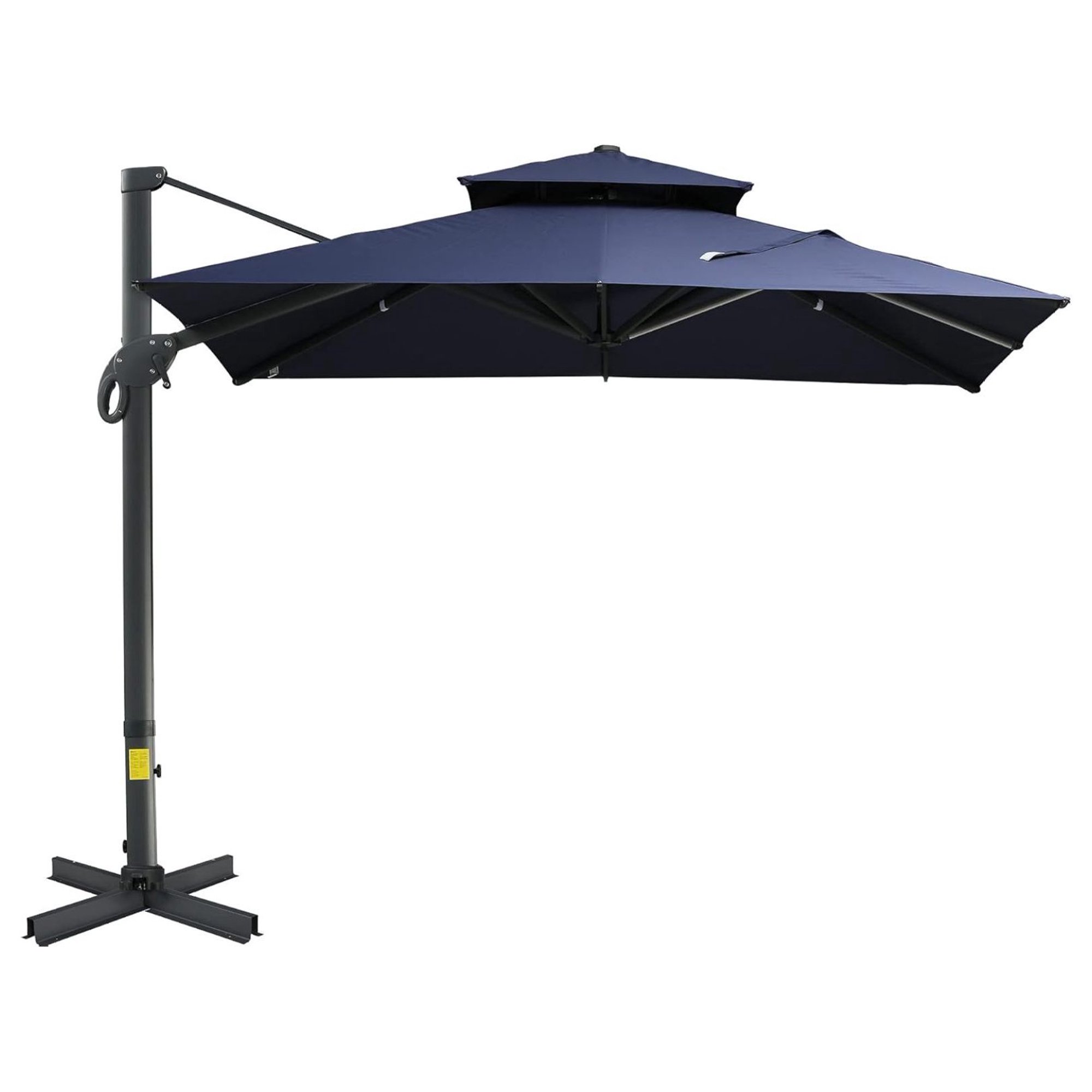 Lorelia 10ft Offset Patio Umbrella with Base, Double Top Hanging Aluminum Cantilever Umbrella with 360-degree Rotation, Easy Tilt, 8 Ribs, Crank, Cross Base, Cover, Strap