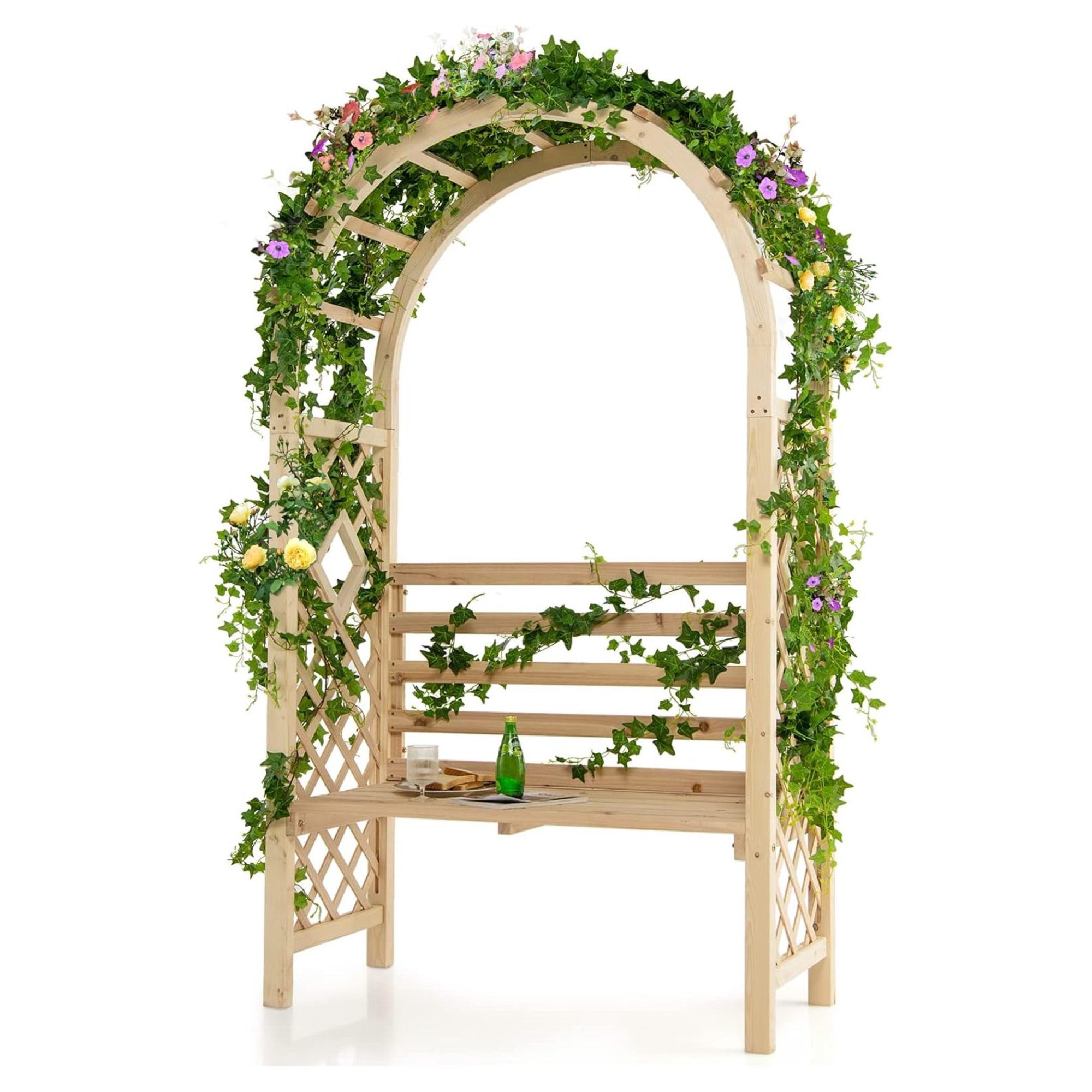 Lorelia 81in Garden Arch with 2-Person Bench, Wooden Garden Arbor Archway Trellis for Climbing Plants, Outdoor Wedding Arches Patio Trellis Pergola for Ceremony Party Lawn Backyard, Load 543 lbs