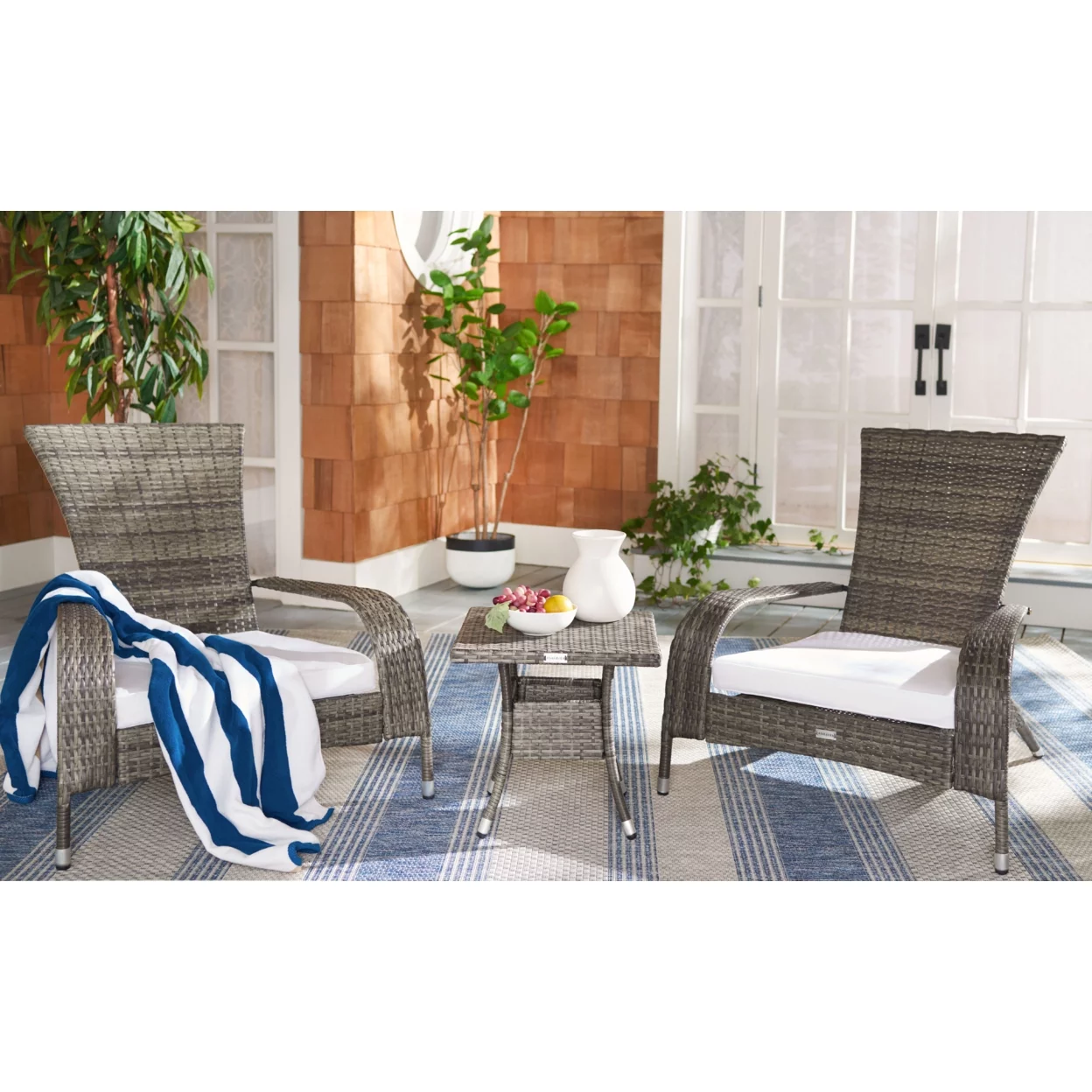 SAFAVIEH Edna Outdoor Patio 3 Piece Lounge Set, Grey Brown/White