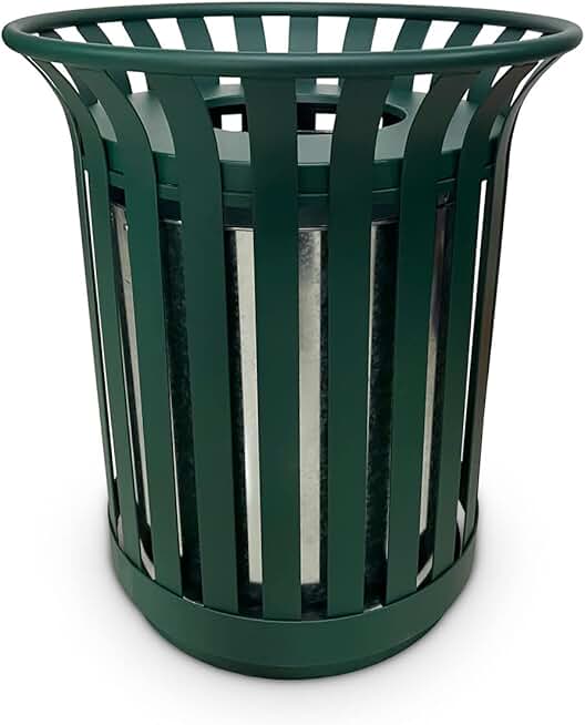 Outdoor Metal Slatted Trash Receptacle,Waste Receptacle,Commercial Trash Cans,Zone Round Garbage Bin,Square Hotel Street Patio Indoor Metal Stan (Large - Green)