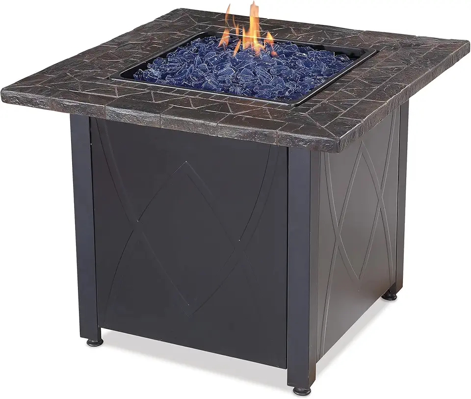 30 Inch Square 30,000 BTU Outdoor Propane Gas Patio Fire Table with Blue Fire Glass and Protective Cover
