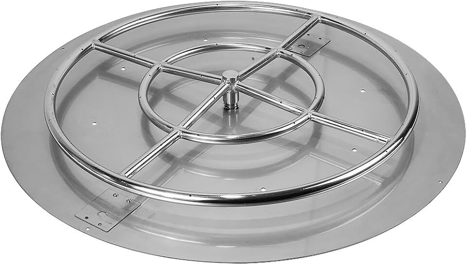 36" Round Flat Fire Pit Pan w/ Installed 24” Round Stainless-Steel Fire Ring Burner - Weatherproof, Whistle-Free Set for Patio & Backyard
