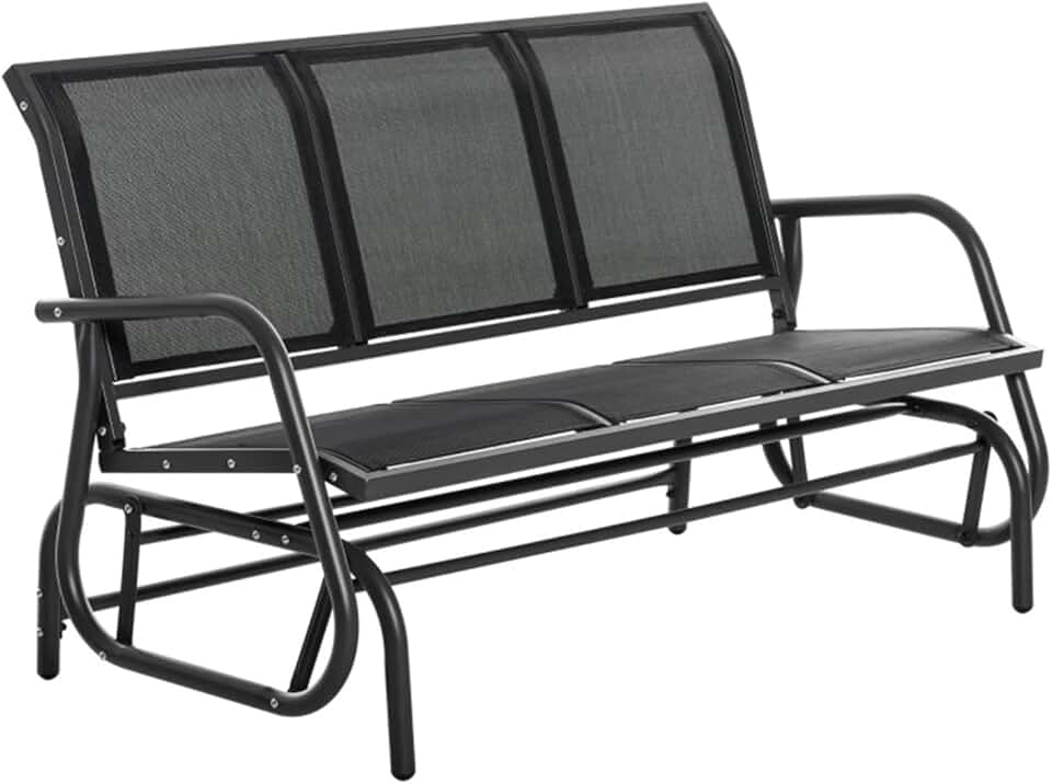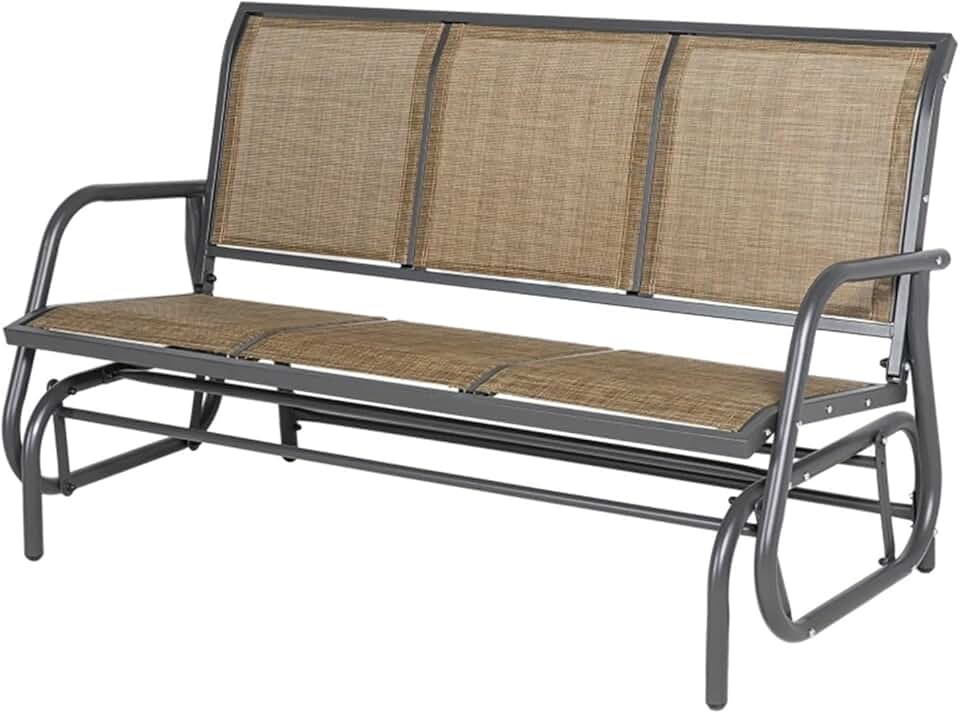 DFHBFG 3-Person Porch Glider Swing Outdoor Patio Glider Bench Breathable Mesh Fabric Metal Frame