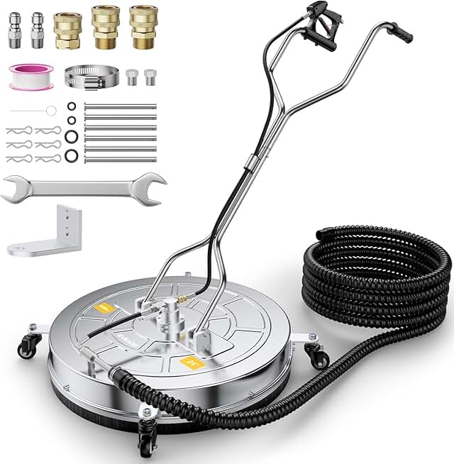 PWACCS 20" Pressure Washer Surface Cleaner, Stainless Steel Power Wash Surface Washer with Dual Handle & 4 Wheels, 4500 PSI Pressure Washer Scrubber for Cleaning Concrete, Cement, Patios and Driveways