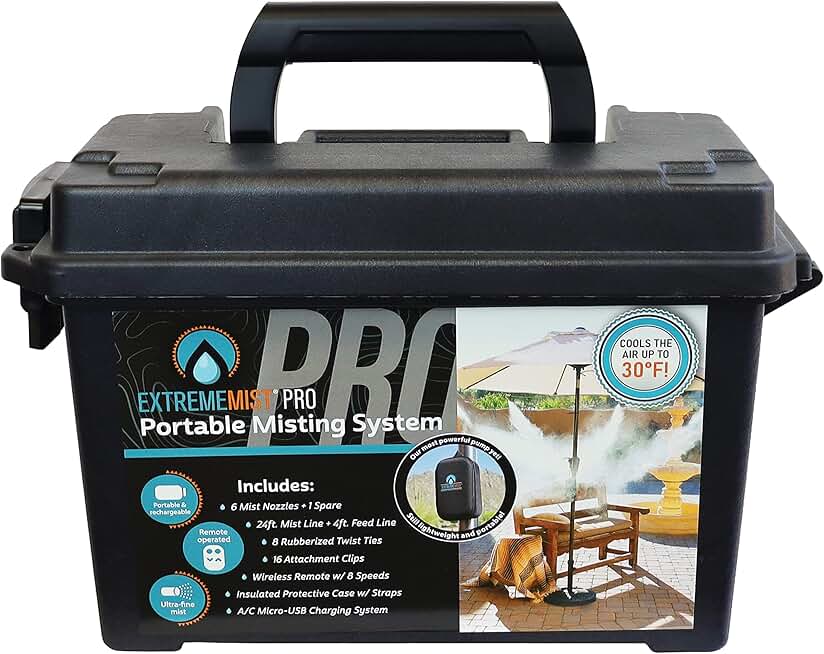 Extreme MIST Portable Misting System Pro Kit - 6 Mist Nozzles & Pro Pump | Easy to Setup | 24 ft. Mist Line for Outdoor Patios, Golf Carts, Greenhouses, Canopy, Decks & More - Cools the air up to 30°F