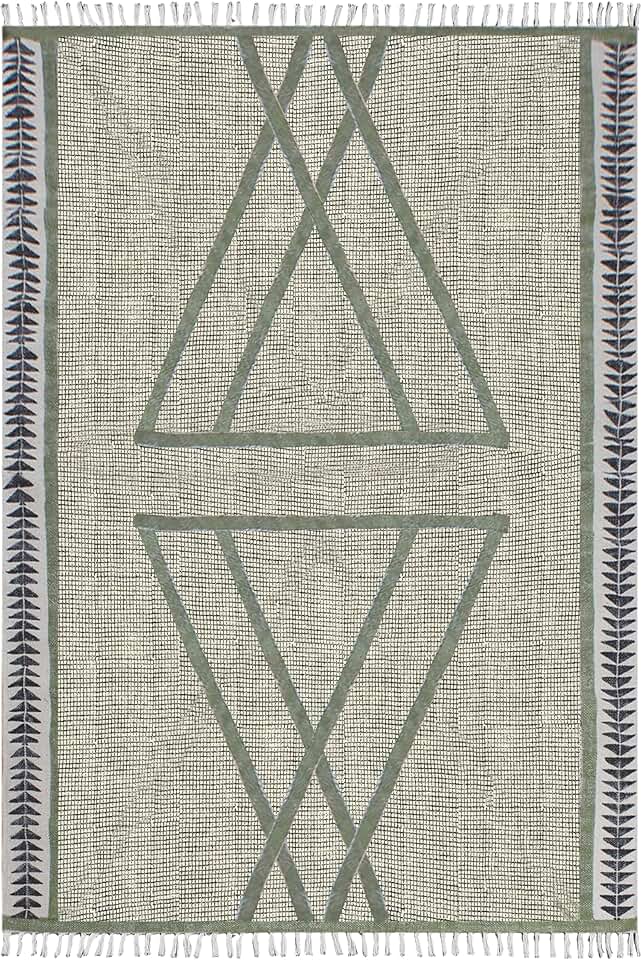 Kilim Rug 8 Square Area Rug Washable Thrown Cotton Dhurrie Green Black Cotton Rug Boho Rug Flatweave Rugs for Large Bedroom Square Dining Table Hall Room Patio Doormat