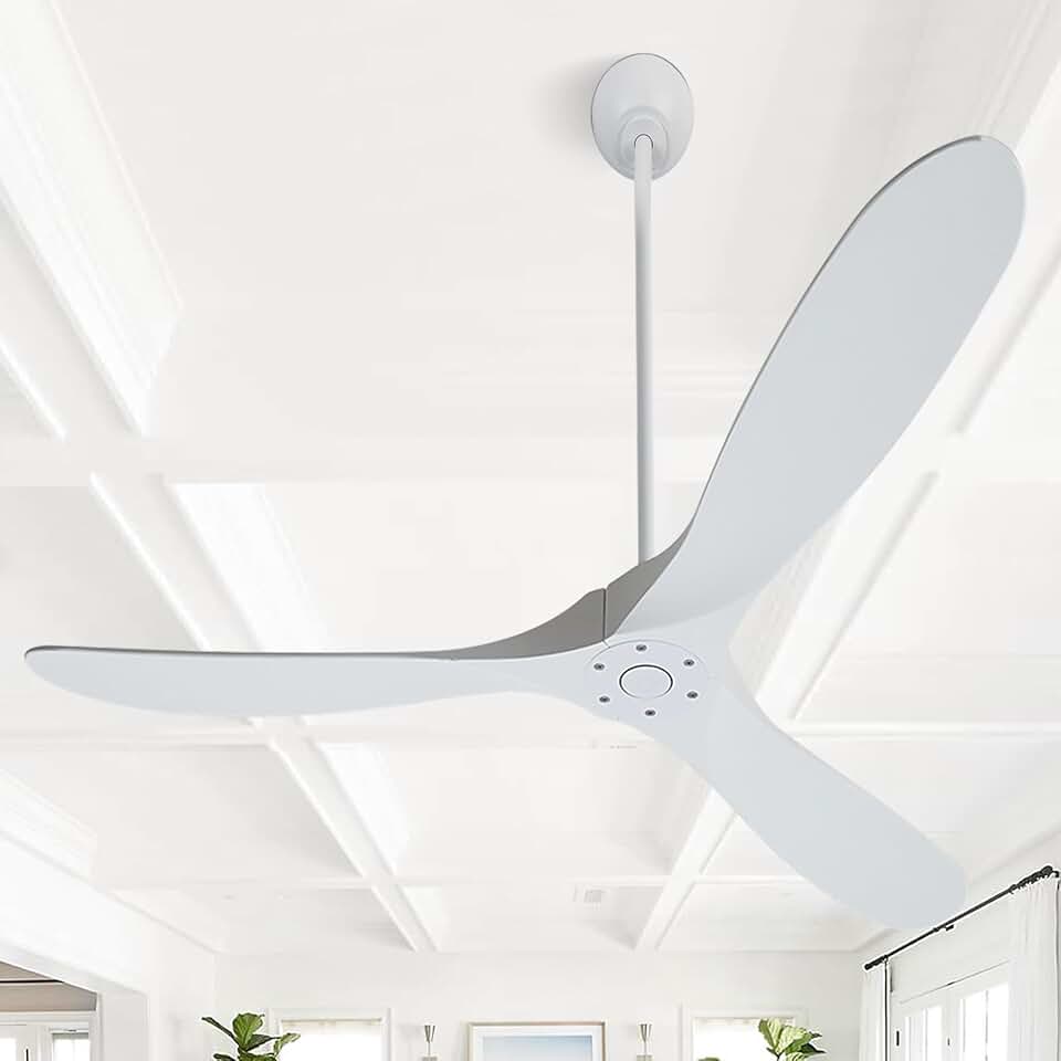 60 inch Ceiling Fans Without Lights, Ceiling Fan no Light with 3 Blades, Solid Wood Ceiling Fan with Remote Control and DC Motor, Indoor Outdoor Ceiling Fans for Patios-White