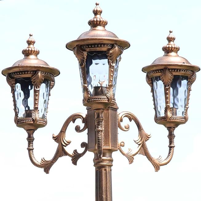 Outdoor Post Light Fixture Retro Exterior Pole Lantern, E27 Hardwired Garden Landscape Lamp Yard Lightings,Traditional 2-Head Lights for Patio Pathway
