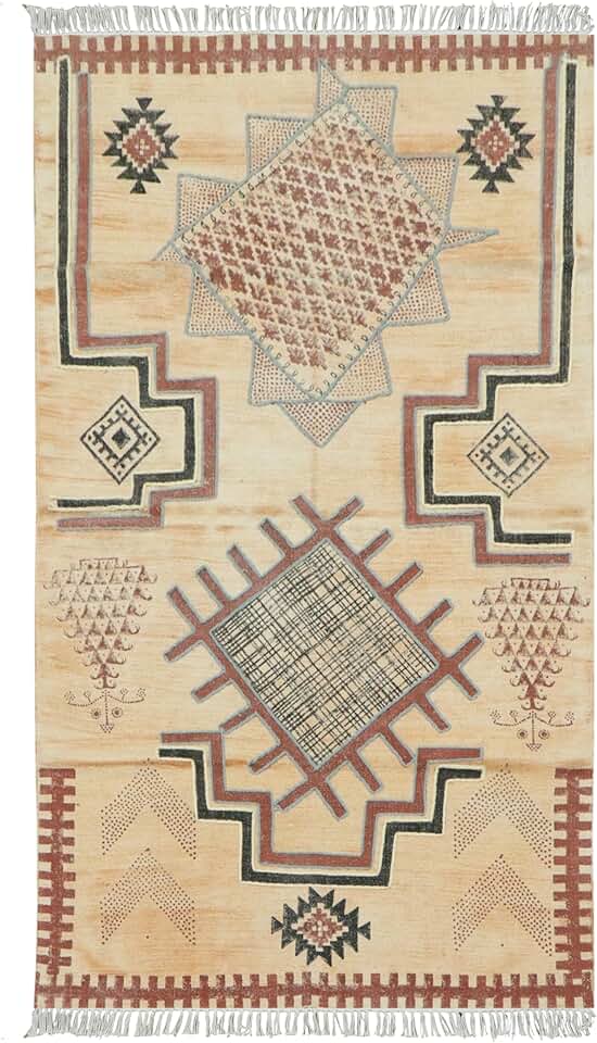Kilim Rug 8 Square Area Rugs for Flatweave Area Rug Brown Multicolor Cotton Rug Embroidery Washable Dhurrie Indoor Outdoor Use for Large Area Dining Room Living Room Hall Room Patio Doormat