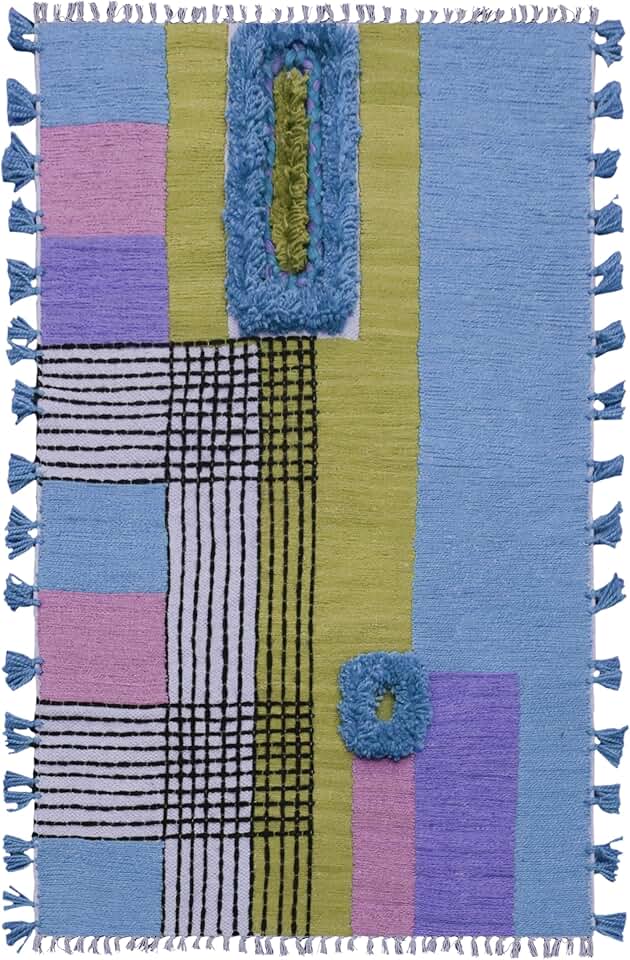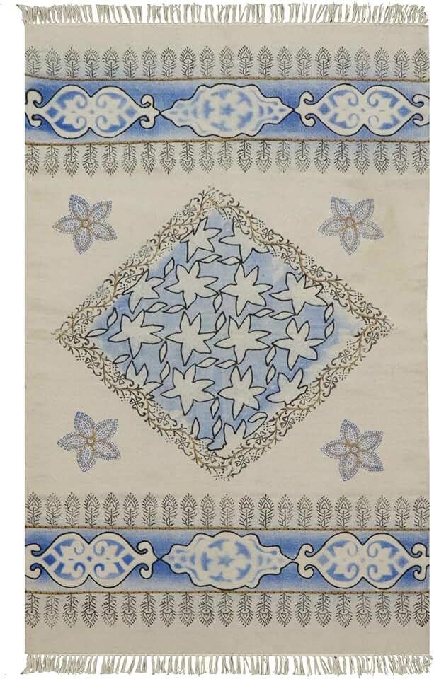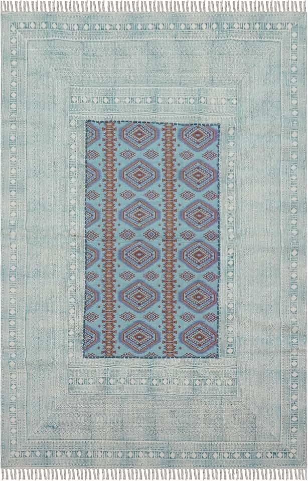Kilim Rug 9x15 Area Rugs for Flatweave Area Rug Blue Multicolor Cotton Rug Embroidery Washable Dhurrie Indoor Outdoor Use for Large Area Dining Room Living Room Hall Room Patio Doormat