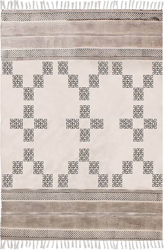 Kilim Rug 8 Square Area Rug Washable Thrown Cotton Dhurrie Beige Black Cotton Rug Boho Rug Flatweave Rugs for Large Bedroom Square Dining Table Hall Room Patio Doormat