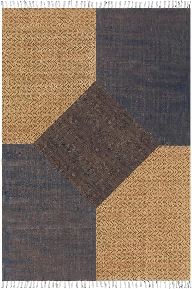 Kilim Rug 8 Square Area Rug Flatweave Area Rug Washable Cotton Rug Brown Blue Cotton Dhurrie Boho Rugs for Large Bedroom Square Dining Table Hall Room Patio Doormat