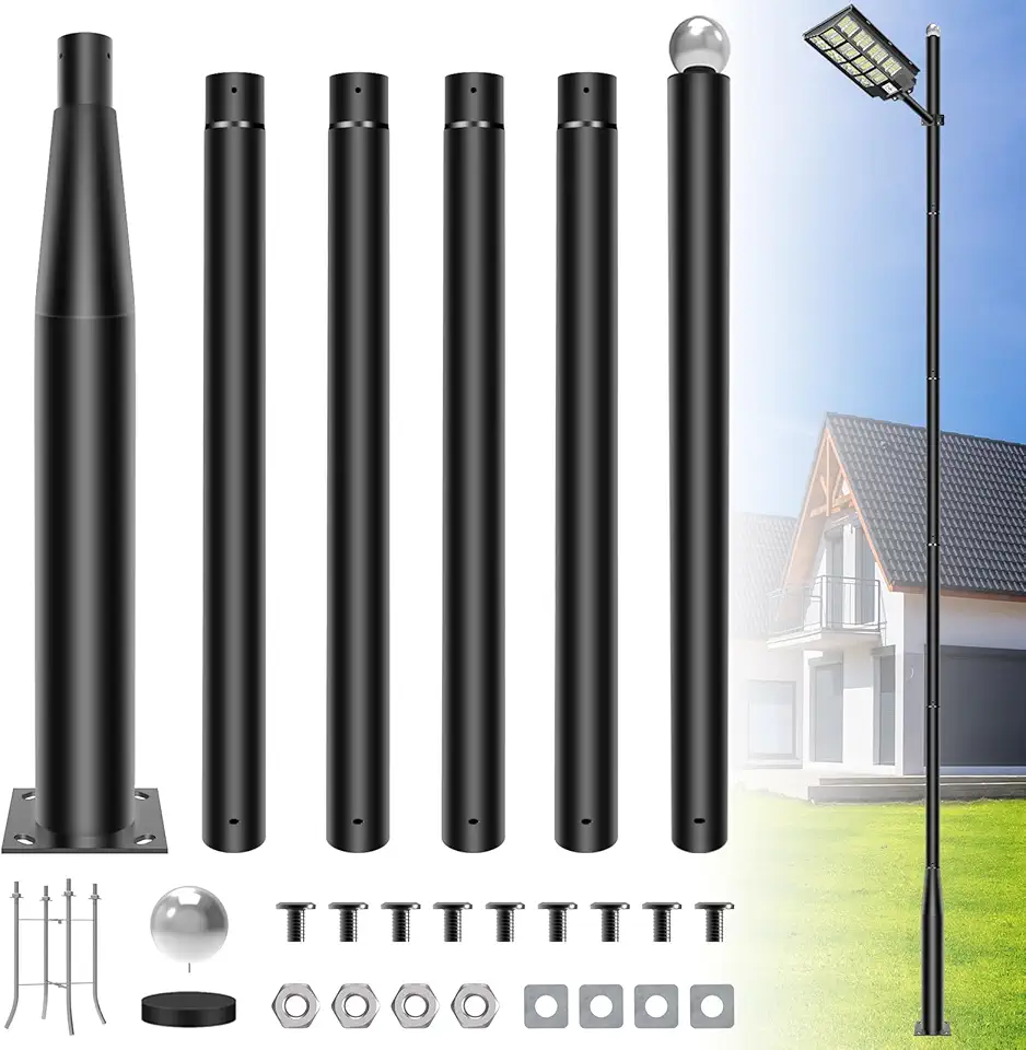 CEDIO 20ft Tall Street Light Pole, Solar Street Light Installation Pole, Outdoor Solar Street Lamp Post with Base, Solar Street Light Pole Accessory for Backyard, Street, Patio, Exterior House