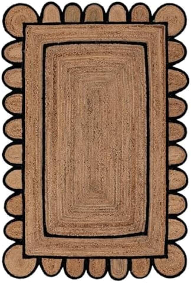 Scalloped Natural Rectangular Jute Rug, Boho Braided Area Rug, Coastal Farmhouse Jute Rug for Kitchen, Patio, Hallway, Entryway,Handcrafted, Eco-Friendly (2x20 Ft)