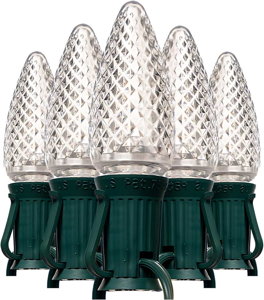 100ft C9 Magnetic Christmas Light Strand, 100 Sockets per Strand, Shatterproof Warm White LED Bulbs for Holidays, Events, Patio, etc. Green Strand