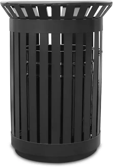 Outdoor Metal Slatted Trash Receptacle,Waste Receptacle,Commercial Trash Cans,Zone Round Garbage Bin,Square Hotel Street Patio Indoor Metal Stan (Big-Black)