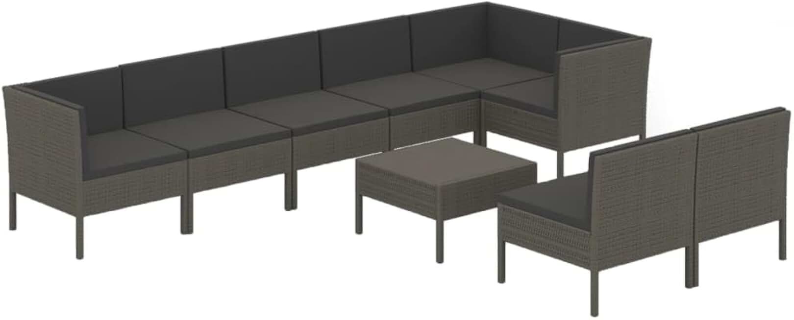 vidaXL Patio Lounge Set, 8-Piece with Cushions - Weather-Resistant Poly Rattan Outdoor Furniture Set, Lightweight and Easy-to-Clean - Gray