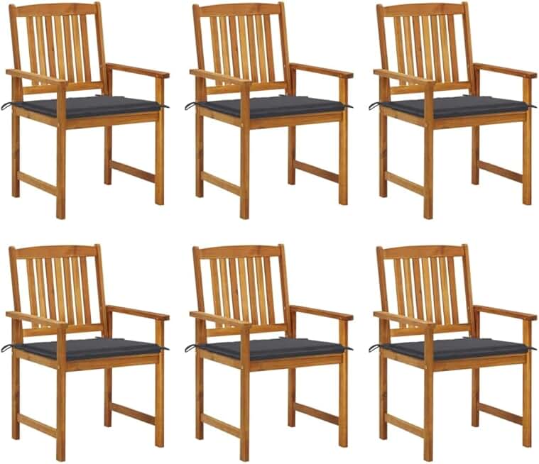 vidaXL 6 pcs Acacia Wood Patio Chairs with Cushions - Solid Weather-Resistant Outdoor Seating Perfect for Sunbathing | Comfortable, Durable and Easy to Clean