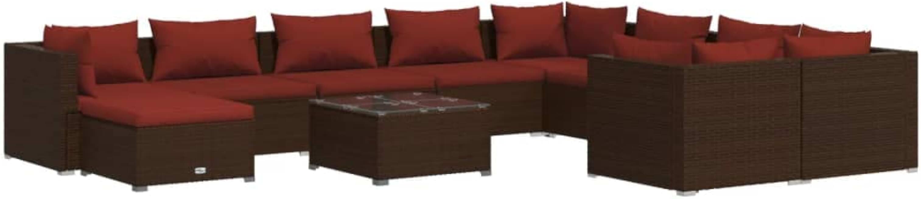 vidaXL Patio Lounge Set - 11 Piece Set with Cushions - Weather-Resistant Poly Rattan - Brown with Cinnamon Red Cushions - Easy to Clean - Modern and Stylish Outdoor Furniture