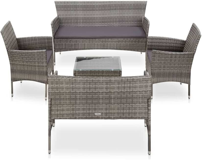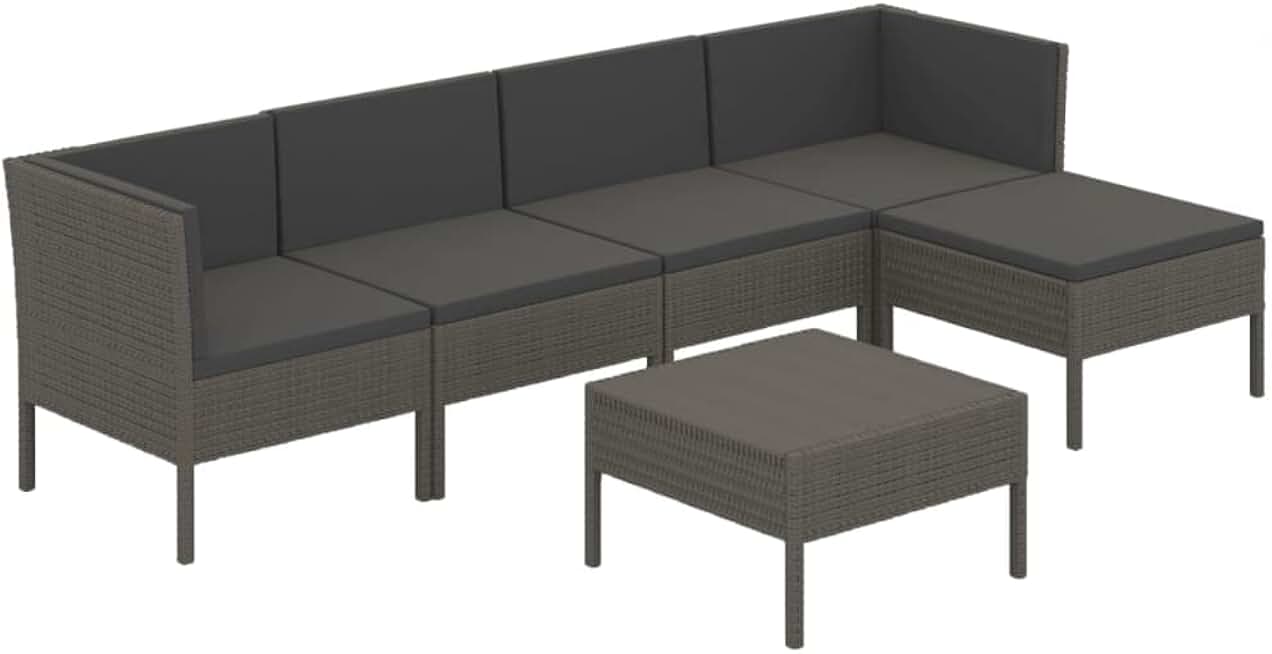 vidaXL 6-Piece Gray Patio Lounge Set - Weather-Resistant Poly Rattan Outdoor Furniture Set with Soft Cushions, Easy to Clean Polyester Covers and Lightweight, Modular Design