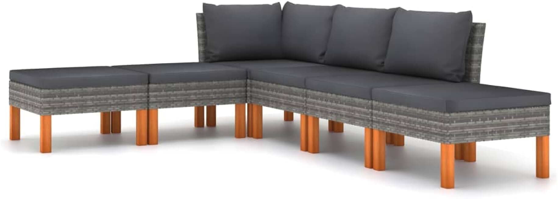 vidaXL 6 Piece Patio Lounge Set with Cushions - Weather-Resistant Poly Rattan & Sturdy Eucalyptus Wood - Gray & Anthracite - Modern Farmhouse Style - Easy-to-Clean & Portable