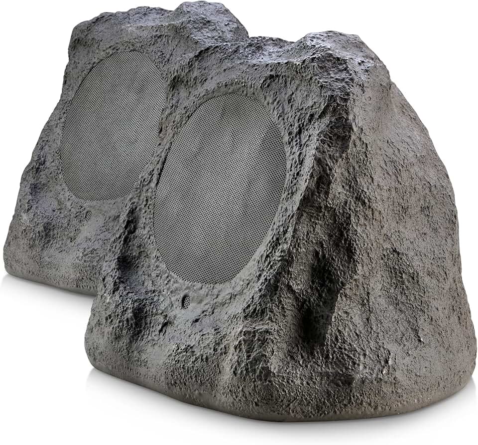 SPS-2000-SL Dual Bluetooth Active Rock Speaker Pair for Outdoor, Patio, Garden, Pool Area, Gray Slate