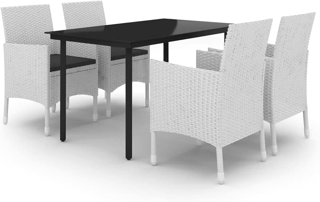 vidaXL Outdoor 5 Piece Patio Dining Set with Cushions - Poly Rattan, Glass and Steel - Sleek Design, Comfortable and Easy to Clean, Weather-Resistant - Perfect for Garden, Patio and Backyard